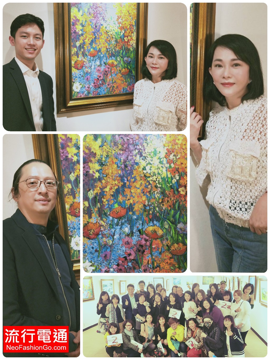 怎麼會有這次展覽的想法呢?「前陣子知道要辦師生聯展,正巧我重新聞始動筆,但阻礙於場地問題,只能展一幅20號左右大小的畫。聽聞目前新冠狀疫苗已成功問市,疫情已趨緩,漸漸撥雲見日了。所以我選擇了正在籌劃的花語系列第一幅作品「喜悅」作這次聯展展出,希望藉由花的多彩繽紛燦爛來表達喜悅,祝福大家早日恢復往日快樂。此次展覽沒有商業目的,歡迎大家進行純淨的觀看,不須要有壓力。我不是專業,單憑心情在畫,談不上技巧更別說畫風,著追求自在跟畫約會的初衷,初次加入,戰戰競兢的心情,希望能分享喜悅,您們的鼓勵就是給予我更加進步的空間。」「這幅(花語)我以花為主,繽紛的色彩,是想表達心中渴望的追求喜悅,對於初學的我不懂什麼技巧與畫風,快樂隨興自在的跟畫約會,在過程中因心境變化,雖同一幅畫,每次看卻很不同的心情,不斷修改,作畫真的療癒人心,這是畫的魅力吧!我個人認為每位觀賞者當下心境,會深深影響對畫的觀感。」現場還有位很像吳怡農的小鮮肉忙進忙出,原來是她23歲的兒子John,差點嚇壞大家,只能說邱于庭保養的真好,一點沒有歲月的痕跡。( NFG - 流行電通 - NeoFashionGo - www.neofashiongo.com )